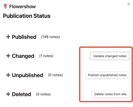 Flowershow: Publish all notes) 또는 수동 업로드(리본 아이콘 🌱클릭)